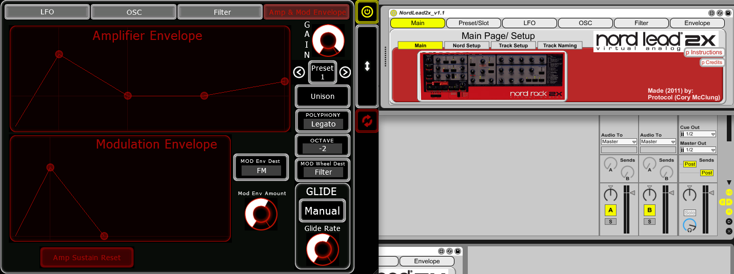 | Description: | UPDATE: SAVES Presets within patch! Have a JSON file to load into preset upon request by email: carbonmanifesto@gmail.com. It only has 7 patches but will give you a better idea of what you can do. Control NordLead2x's every parameter via patch (except arp, cause who really cares about the arp when Abletons is way better anyways!) If you make new presets with patch, please save do share with me via email and I will include with download so others can share your awesome work: carbonmanifesto (at) gmail (dot) com UPDATE for Mu Nord Lead 2x Patch: Changes: - Load Preset 1 on loading amxd max patch instead of blank. - Lemur follows movement within amxd max patch main menu. - Fixed bug on changing the midi input. - Multisliders now move faster (no lag). If you find a bug, let me know and i'll try to fix it. Thanks, Protocol Also, this patcher was originally designed for use with Lemur.Mu (as seen in the screenshot), however this can be used as a regular patcher too. If you want to download associated Lemur.Mu stuff to go to: http://www.jazzmutant.com/lemuruser_moduledetails.php?id=205 Lastly, if you have any issues or problems email me at the address indicated above. Have fun and please do share! Protocol |