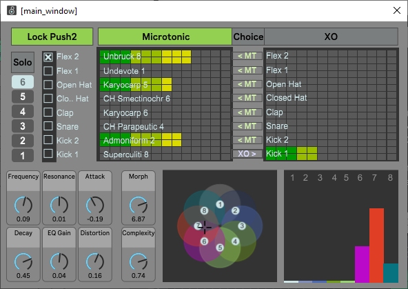 | Description: | It’s all about repetition and creating variation. I’ve always liked Microtonic and now there is XO. Two great drum VST’s that are technically miles apart. This MaxForLive project combines them into a device that is more than just the sum of the two. XO is all about samples. Microtonic is a drum synth, no sample in sight. These are two worlds that will never meet. But wait. From every Microtonic preset a sample can be made. This is the first step. We select a set of MTDRUM and MTPRESET files to make WAV’s. My set has about 6.500 presets; the automated process that makes a WAV file of all of them takes about 6 hours. The good news is that this has to be done only once. Then XO comes in to analyze these samples. After that Microtonic and XO are at the same level. Every WAV in the XO database corresponds with a preset for Microtonic. The XO database is standard SQLite and not encrypted, cudo’s to XLN! Now we can make drumsets in XO from the Microtonic samples and import them back into Microtonic. Microtonic uses the XO database to select the presets that belong to the samples. It also selects 7 others per preset that sound just a little bit different. You can morph between these presets while playing live to create variation. Just like in XO you can filter on length, frequency, type and ’drumminess’. Both Microtonic and XO have 8 pads. Their VST’s are embedded in the same MaxForLive device. This combines into a drumrack with a total of 16 pads with MIDI notes ranging from 36 to 51 (C1 to D#2). By default the first 8 trigger the Microtonic and the upper 8 trigger the XO, but you can swap these for each pad separately. This time coding MaxForlive has grown into a complete drumrack solution with access to 8 separate drumtracks. In all places where needed there is a dedicated MaxForLive device. All of these devices are contained in this package. This project is for you if you have fully working versions of both MicroTonic and XO. A Push 2 will help to operate it, but is not needed for any function. To avoid copyright issues no part from SonicCharge’s MicroTonic or XLN’s XO is included in this package. I’m considering two additions to do in the future: 1. Add Push 2 functionality for the XO 2. Add a way to save the drumsets you make, including import of MIDI from XO patterns. I’m not much of a musician myself. What I have in mind is improvising with this project with Novation Circuit playing the melodic parts. It should become an Electribe on steroids. It will be all about repetition and subtle movements, no saving is needed in this stage. In Holland, april 2020, we have what is called an ‘intelligent lockdown’. This means I can go where I like if I want to. But we are advised to stay at home if we don’t need to be outdoors. A great majority of people, including myself, behaves this way. This means I will have a lot of time in the months to come to play with this project and improve on it. This is the first working version and I’m looking forward to read what you think of it. This package comes with a 24 page manual to explain all functionality. There a lot going on in this project, perhaps you can pick up some ideas for yourself, even if you don’t have both MicroTonic and XO. |
