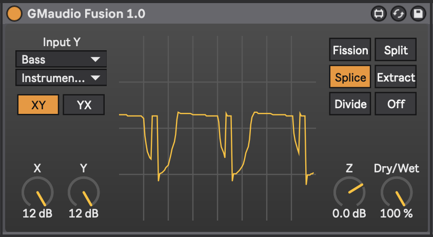 | Description: | Ever wondered what it would sound like combining two sounds together mathematically? Well now you don't have to! This device allows you to grab audio from anywhere in your Live set (Y Input) and combine it with the audio that is passing through it (X Input), smashing the two sounds together in various ways like a Hadron Collider of audio destruction! This is GMaudio Fusion. Its quite a simple device and yields unexpected results. It's great for glitching out drums, distorting basses or adding texture to leads and pads. The X & Y Inputs are combined using arithmetic in the following ways (more to come with updates); - Dividing the two signals and outputting the remainder (Fission) - Split the signals into positive and negative and combining them (Split) - Allow one signal to pass when the other is at a positive value (Splice) - Take one signals absolute value away from the others bipolar value (Extract) - Multiply one signals absolute value by the others bipolar value (Divide) The resulting Z output can change quite dramatically with changes in either signals amplitude. Combining simple synth sounds that are musically related can create new harmonic waveforms, while combining complex sounds, or feeding a sound back on itself, can quickly turn into the digital equivalent of sparks flying at you! So be sure to wear your safety glasses 😎 All important processing happens in gen~ for precision and is upsampled to reduce aliasing, but make no mistake, this is purely digital distortion and aliasing is unavoidable. There is also a soft clipping algorithm at the end of the chain to limit the amplitude of the output which can be used to further distort the resulting signal. I've also included an Audio Effect Rack, which allows you to use Fusion to 'Morph' Between sounds. Just select the Y input for each instance of Fusion in the rack and you're ready to use the XZY Macro to blend from the X input, to the Z Output, to the Y input, Effectively morphing between 2 sounds in new ways! There is a lot to explore here and I would love to hear any feedback you might have. I cant wait to see what you create with it! |