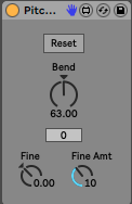 | Description: | This a very simple device allowing you to send pitchbend data using a dial. You can choose to auto reset when you let go of the mouse, or just wheel freely. This can be used to calibrate pitchbend on certain machines, for example. |