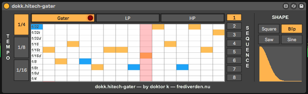 | Description: | Rhythmical gating effect, with a sequencer and 8 sequences you can automate between. Good for all kinds of psytrance and glitchy effects. Also has a small section with Highpass and Lowpass filters, and a gating shape control. Inspired by Tom Cosm's Daily Decibel videos, where he's trying something similar. Have fun! |