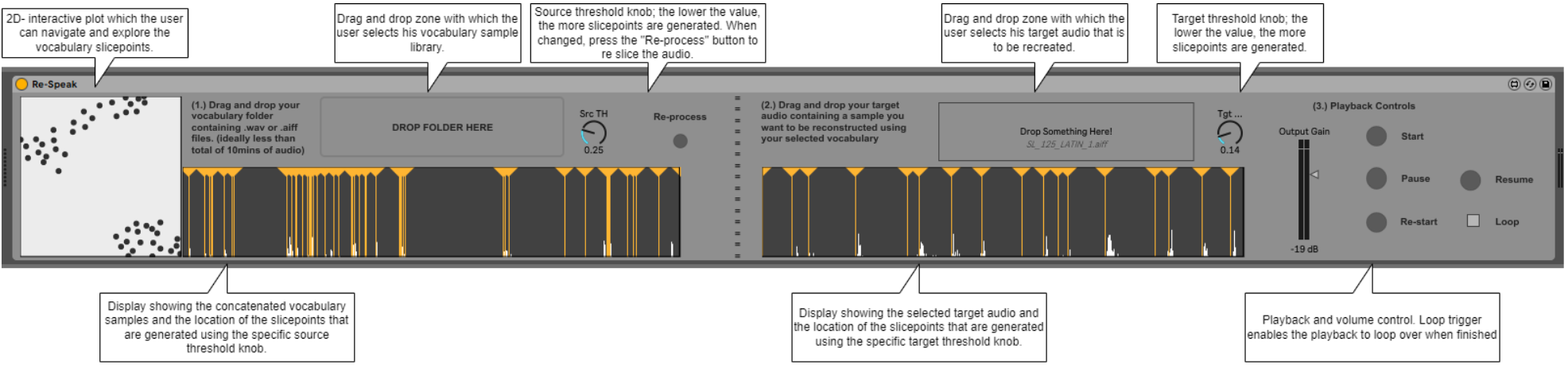 | Description: | Recreates a piece of target audio using a different library of chopped up audio samples. The FluCoMa toolkit by James Bradbury, Jacob Hart and Ted Moore was used to perform the audio analysis and processing portion of this tool. |