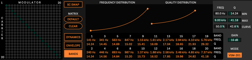 | Description: | Here is a much-needed update to the VOC-201 vocoder released last year. I completely changed much of the fundamental architecture of the original. For instance, rather than rolling my own crossover filters using biquads, I migrated to using resonant bandpass filters. This gives a lot more flexibility, and stability when changing the frequency bands after the fact. The bandwidth can now be controlled by "Q" parameters. The frequency (in CURVE mode) and Q range are now defined by a function by selecting the endpoints and curve parameters. This ranges your filter distribution and is likely the most powerful shaping method in this device. In VSM-201 mode, the bands revert to the frequencies used by the original hardware, but the Q still follows its curve function. The band gain parameter may be necessary/desirable to adjust when altering the Q. Taking cues from my additive synth, Partials, and my drum synth, Clapper, I have included band-level (multi-slider) controls for many aspects of the vocoder. I was never totally satisfied with the dynamics/preprocessing section (gate, compressor, emphasis EQ) on the original. I ditched the time-based compressor in favour of hyperbolic tangent (tanh()) functions, which can be easily implemented on a per-band level. This still compresses (saturates), but ignores timing envelopes, which makes it a bit more forgiving when it is implemented this way. The Slew Rate Limiter (attack envelope follower) and Silence Bridging (release envelope) are also both implemented at a band level. The Voiced/Unvoiced detection engine was also rebuilt from scratch. Not only does it perform better (functionally, not CPU-wise haha), but it has also been opened up with a slew of tunable controls. The comparator sliders, for instance, let you develop the V/UV mix, by scaling how much white noise and carrier signal you'd like for both the unvoiced and voiced modes. The V/UV detection balance should can also be tweaked, although previously calibrated it to switch correctly between consonants and vowels when its around 50% on my voice. The matrix remains, so wild cross-modulation schemes are possible (and encouraged!). I'd also implore you to open up the device if you are curious how it all works. I tried to make the topography as hierarchal and orderly as possible on the primary signal path, so it should be fairly easy to understand :) |