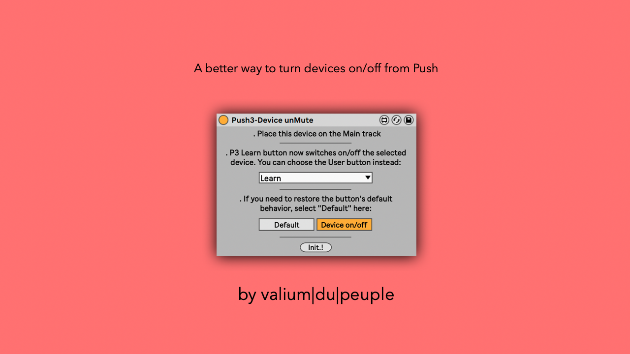 | Name | Version: | Push3-Device unMute 1.0 |
