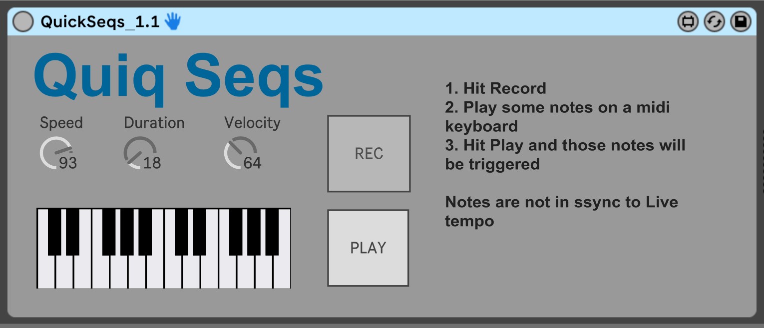 | Description: | Very simple step sequencer Play some notes on a midi keyboard Then the device will play them back |