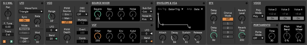 Description: Editor for Ableton Live of the Roland S-1 synth.