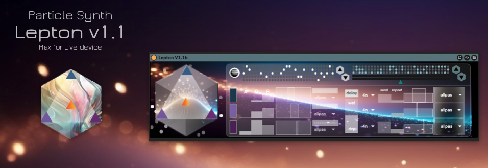 | Description: | Max for Live device Particle Synth Lepton is an arpeggio synthesizer that generates random particle sounds based on the input MIDI note, producing up to 5 voices of 16th-note particles. This synthesizer creates a different random timbre each time, with each particle sound generated individually. Particle Synth Lepton features three slots, each equipped with its own envelope and filter. A Cell with one of 16 different timbres is inserted into each slot, and the combination of these cells generates a unique sound (16 x 16 x 16). Delay section allows you to specify the send level to three tempo-synced delays randomly, toggling them on or off every 8th note. Each delay can be configured with settings such as delay time (16n, 8nd, 8n, 4n), send level, repeat, and filter. By combining it with other Expansion Packs, you can create various variations in sound and appearance. v1.1 Change Log ・Added an Arpeggiator ON/OFF button ・Ability to load a single Cell into three slots simultaneously ・Changed the location for dragging and dropping appearance materials ・Added "cover" to the appearance options ・Increased the number of included Cells to 12 (16 x 12 = 192 waves!) ・Increased the total number of included appearance materials to 27 http://www.qolsonic.com Lepton can use user samples. Enjoy your original Lepton sound using various samples. https://youtu.be/QIIED0FFfWo Particle Synth Lepton is a synthesizer that operates exclusively within Max for Live in Ableton Live. It does not work with AU or VST formats. http://www.qolsonic.com Without explicit written permission from us, it is prohibited to directly or indirectly modify, redistribute, or distribute all or part of this software. |