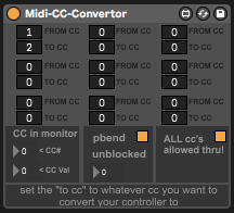 | Description: | converts from 1 midi cc to another. ability to convert multiples ccs at once.. this is included in the "orchestral template tools 2" collection, but i decided to post it here as its quite useful on its own. |