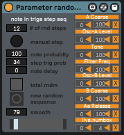 | Description: | this esoteric device generates a random pattern, that is then translated to parameters via mapping. a midi note into this device trigger the next step of the pattern. theres a note probability that applies to notes going through this, theres a 'step probability' that applies only to the notes affecting the sequencer inside of this device. great for generative pattern based stuff. comes in an audio and midi variant. the audio contains a threshold so triggers will occur via volume input. see the included example .also for usage and ideas. note: this is an old device created sometime between 2021-2023, for the "muse concrete sketch series" on making generative experimental music via youtube: https://www.youtube.com/watch?v=9JpMH6KaAuU |