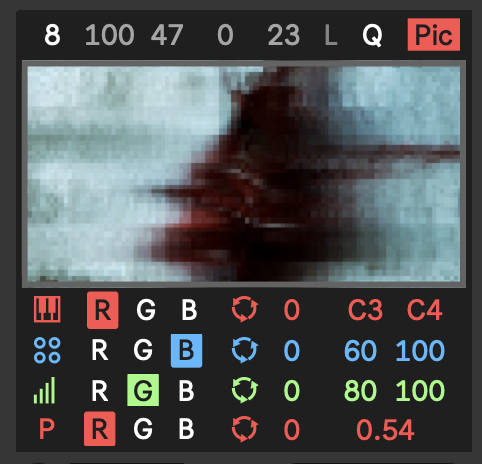 Just for fun Pic Tool is a Midi Generator for Live 12 that takes an image of my dogs butt, or other image I suppose, and uses the image to generate a midi clip. You can choose an RGB channel to use for the Pitch, Velocity and Chance as well as a range to set the values to. You can also rotate through all available values generated by the image. It will stay in sync with the selected scale in Live. It mostly filters out repetitions but for the best results try to use an image with a variety of color.