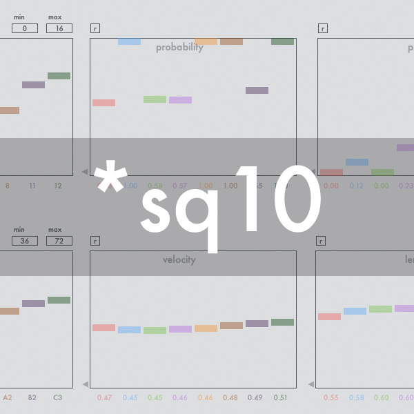 | Description: | *sq10 is a MIDI-based note generator that can play up to eight different notes in individual cycles. All parameters, such as pitch, velocity, length and the probability of playback, can be set, changed and randomized very quickly and intuitively in a graphical user interface. The loop lengths, which can be set individually for each note, always refer to a clock whose frequency can be synchronized with grid-based note values with the DAW host or can be set independently of this. The start point of each loop and the clock-independent internal speed of each loop can also be easily manipulated in the same way. In addition, each loop can be individually faded in or out. Further documentation can be found in the Max for Live device if Ableton Live ́s Help View is turned on. Demo Video: https://youtu.be/ZsDU8GSrKMQ |