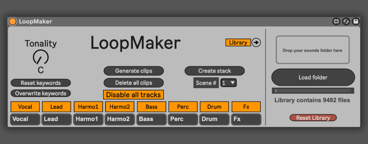 | Description: | LoopMaker is a Max for Live device crafted to enhance your creative process with loops in Ableton Live. It empowers you to seamlessly integrate existing loops from your computer into Ableton Live's Session View, enabling spontaneous arrangement experimentation and real-time creativity. Walkthrough/Overview : https://youtu.be/ny7TgOZ8yGk?si=Ja9By5EFdvbEao6j Features : -Sort your sounds folder using keywords. -Create up to 64 audio clips at once (8 tracks times 8 scenes). -Auto-transpose audio clips to match chosen tonality. -Dynamically change the tonality of playing clips. -Create stacks of your favorite playing clips (see walkthrough video). Requirements : -MacOS 13.5.2 or earlier or Windows. -Ableton Live 12.0.5 or earlier. If you have any questions/feedback/issue don't hesitate to email me at loukasbeats@gmail.com Known issues and limitations (I'm working on it) -Maximum of 1 LoopMaker device per ableton project. Release notes : LoopMaker 1.0.1 -Compatibility for Windows. -Fixed a bug where stacks that were not playing would be overwritten when generating clips. -Stacks will be saved upon saving a live set. -Updated README file. |
