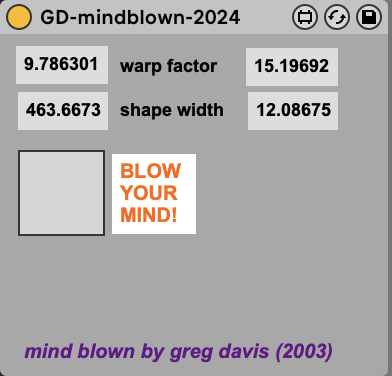 gd-mindblown is a Max For Live device that I originally created in the Max/MSP Pluggo environment in 2003 & updated for M4L in 2024. This sort of a formant shifter / spectral envelope warper. You can control the warp factor & shape width of each channel. Click the toggle to BLOW YOUR MIND! |