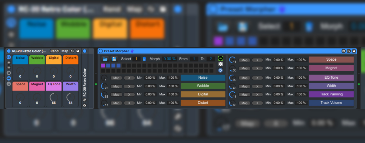 | Description: | Preset Morpher is a small macro mapper where you can morph / interpolate between 2 presets. Live has the "Macro Variation" feature where you can create macro variations, but there there is unfortunately no morph functionality. This device fixes that. MAIN FEATURES: - Save macro variations as presets and interpolate between them - Up to 10 mappers with min / max range and randomizer - As always a multicolored exterior Criticism, bug reports, suggestions, complaints, tips or whatever are always welcome! -> You need help? Contact me: metamagicum@gmx.de Or post a comment: https://maxforlive.com/profile/user/Metamagicum Happy morphing! Preset Morpher: 1.0 tested on Windows 10 Tested Max Version: 8.3.1 / 8.5.6 / 8.6.4 Tested Ableton Live Version: 11.2.0 / 12.0.0 / 12.0.5 |