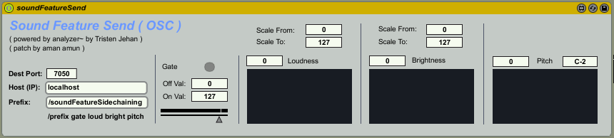 Drop at the beginning ( or after a compressor if you need ) of any audio track in Ableton and you can access the instrument's sound feature information via OSC. |