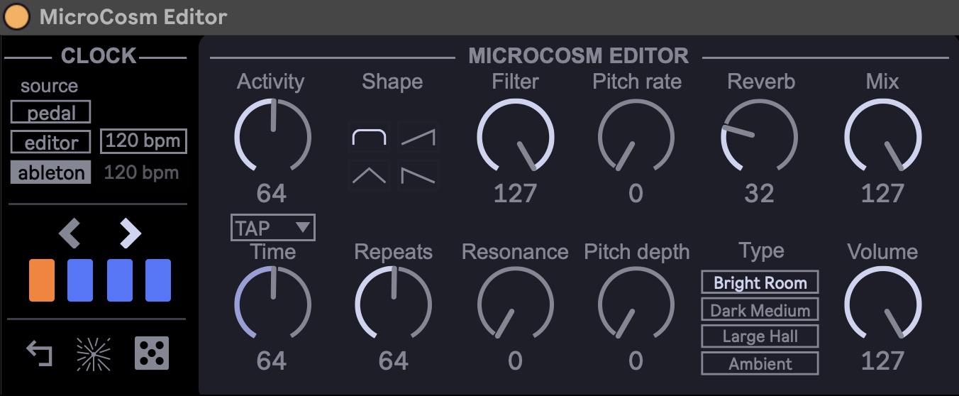 | Description: | For the fantastic Hologram Electronics Microcosm pedal, Sonic Freaks have designed a Max for Live editor. The Microcosm Editor allows you to remotely control all parameters of the Microcosm and save them as a preset in Ableton Live Suite. The built-in Looper in the Microcosm pedal can now also be easily and conveniently controlled remotely. We have added a link function that allows you to automatically synchronize the starting and stopping of the looper with Ableton Live Suite. With the Microcosm editor, it is now very easy to use, for example, just the reverb or the filter of the Microcosm without the granular effects. Because you have a direct overview of all parameters of the Microcosm pedal with the Microcosm Editor, you can make even more creative settings and quickly switch between algorithms and parameter settings. And if you want to be surprised, just press the random function that we have added. As a bonus, we also added 31 presets so that you can get started right away. The Microcosm Editor is a real "Must Have" for all music producers who have a Microcosm pedal and work with Ableton Live Suite 10 and higher. |