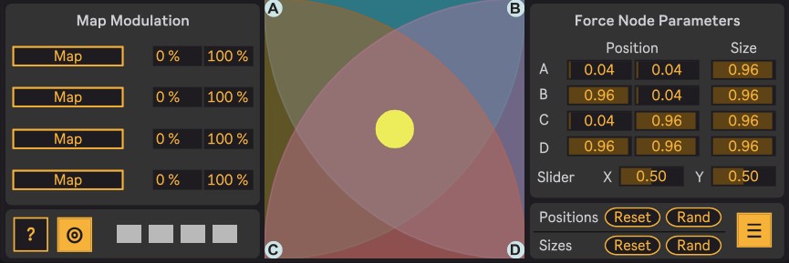 | Description: | Morphmod lets you linearly blend 4 modulation weights. You can use it to evenly crossfade 4 modulated parameters, or randomize the node positions / sizes to create unusual modulation weighting. Morphmod is based on my other device, morphilter. |
