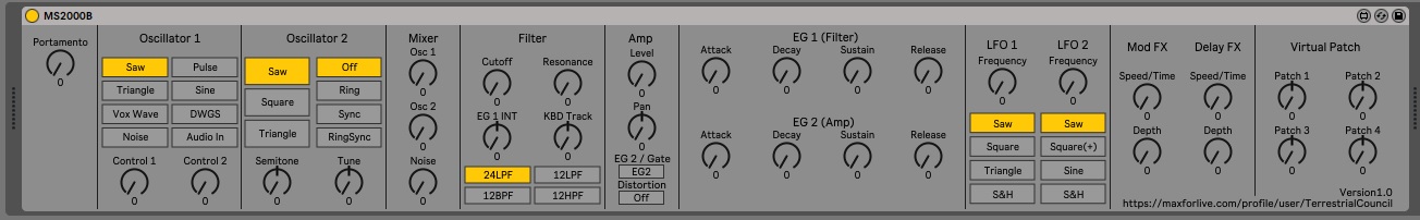| Description: | Full MIDI control of your Korg MS2000B. Features: -All useful parameters fully controllable within Ableton just like the stock synths -Correct scaling of parameters in the automation lane -NRPN parameters (where applicable) are used for the finest possible control Caveat: Due to MIDI spec limitations, you should limit to controlling 3-4 parameters at once, to ensure all the data is sent to the synth. If you like this device feel free to donate by buying one of my albums (the older ones are pay what you can): https://terrestrialcouncil.bandcamp.com/ |