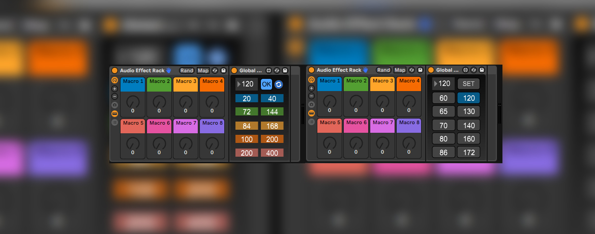 | Description: | Global Tempo is a simple device that allows you to set custom BPM values for your Live Project. This is useful if you want to create half-time / double-time or warp / glitch effects on the fly without having to trigger certain scenes with Live's Scene Tempo feature or using automations lanes in Arrangement View. MAIN FEATURES: - User and touch friendly GUI - Up to 10 custom BPM values - Control via number keys 1-9 (note: BPM tab must be in focus) Criticism, bug reports, suggestions, complaints, tips or whatever are always welcome! Happy Grooving! Global Tempo Version: 1.0 tested on Windows 10 Tested Max Version: 8.3.1 / 8.5.6 / 8.6.4 Tested Ableton Live Version: 11.2.0 / 12.0.0 / 12.0.5 |