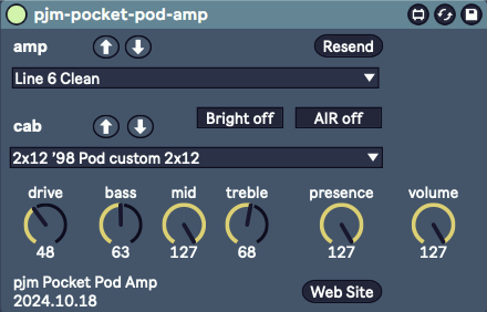 | Description: | This is a Max for Live MIDI Effect device. It is used to control the Line 6 Pocket Pod Portable Guitar Processor. Just the amp-y bits however. If you're using Live, you probably want to use Live effects, not the ones on this device. |