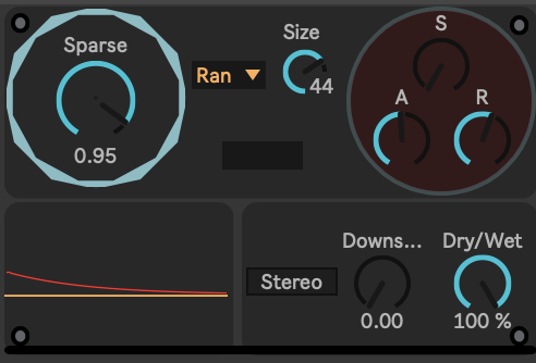| Description: | Sparse / Reduce the density of any sounds. 3 modes : Random, High and external for very different result Shape the result with windowing function (Attack sustain release) Example : https://youtube.com/shorts/5_yXruT8xDk |