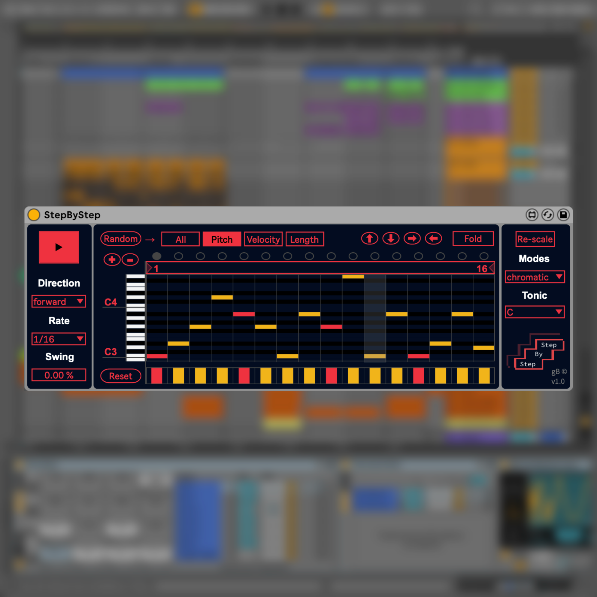 | Description: | StepByStep Version 1.1 Released on 17-11-2024 by gB© - improved swing for greater accuracy DESCRIPTION StepByStep is a 16-step sequencer for Max For Live, designed to facilitate the creation of rhythmic and melodic sequences with a focus on real-time MIDI input. Ideal for live performance and composition, StepByStep allows users to input notes directly using a MIDI controller, providing a hands-on approach to sequence building KEY FEATURES Real-Time MIDI Note Input: StepByStep is built to support seamless real-time note input through a MIDI controller, allowing musicians to intuitively play notes and instantly capture them into sequences. Intuitive Interface: The sequencer’s layout is organized for easy navigation and parameter control. Key settings include Direction, Rate, and Swing, allowing users to fully customize rhythm and progression. Pitch, Velocity, and Length Control: Each step can be individually customized, giving precise control over pitch, velocity, and note length, ideal for crafting intricate rhythmic and melodic patterns. Scale and Mode Options: Choose from modes like "chromatic" or other musical scales to keep sequences harmonically compatible with your chosen key or musical setting. Randomization: The Random button allows for quick generation of new sequences, sparking creativity. --------------- Tutorial: https://www.youtube.com/watch?v=xlvKbsKSaks --------------- Follow me on: https://linktr.ee/giorgiobosso |