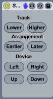 Left/Right selects the device that is to the left/right of the currently selected device in the current track.