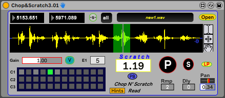 | Description: | ABOUT- The very new version of the 'Chop N' Scratch' is much simpler and efficient, with new features and much better inner mechanism. Chop N' Scratch – An Ableton 'Max For Live' Plugin Device. A user friendly 'scratch' and chop effect where you digitally create a DJ scratching and stutter effect. HOW TO USE- - Drag a file into the waveform window or 'open' it from the browser. - Slice your wave form with the mouse cursor and/or with the Right & Left Locators. Save your slices as presets - (Shift + Click to save and Alt(pc)/Option(mac) + Shift + Click to delete. - Using the Right & Left Locators - Dragging the mouse arrow from the right zone of the Locators number box, will ill a better resolution and vice versa. Also Use the palm icon to drag the cursor up and down for zoom in and for accurate slicing. - Let midi notes play your stored presets or play it manually by a preset number or by the 'P' button. Now 'scratch' it back and forward like a Vinyl, using the 'Scratch Factor' - manually, by Midi Controller mapping, but mainly by using the Live Automation of it. - Use the Useful hints and documentation at the info view Live window for each button and feature. ENVELOPE- - The device contain a built-in envelope mechanism for smoothing attack & release of slices and to avoid unwanted clicks. - Additionally - you can control the attack ramp with the designated m.s number box, which its range to avoid clicks should be between 2 m.s (default) and the maximum length of any midi note that triggering a slice. In another words - don't let the release ramp to start before the attack ramp ends. Design by Zion Bublil in 2022 ziob06@gmail.com |