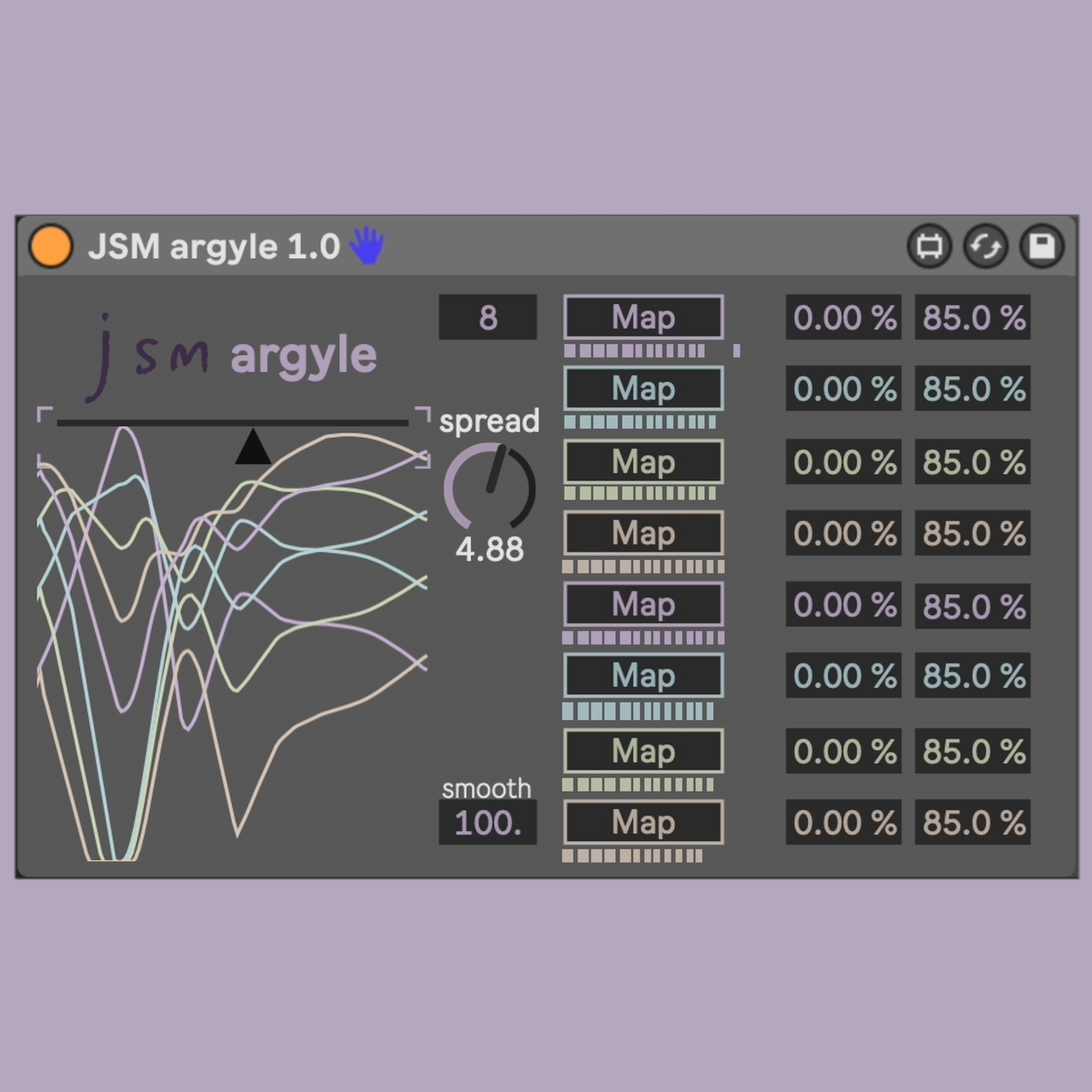| Description: | Argyle is a mappable crossfader controller. use it to smoothly morph between up to 8 sounds, to control a mix in live performance, or as a macro controller. demo video: https://youtu.be/k29hP3khc0k?si=CrGxBiQdMvrco2Y0 |