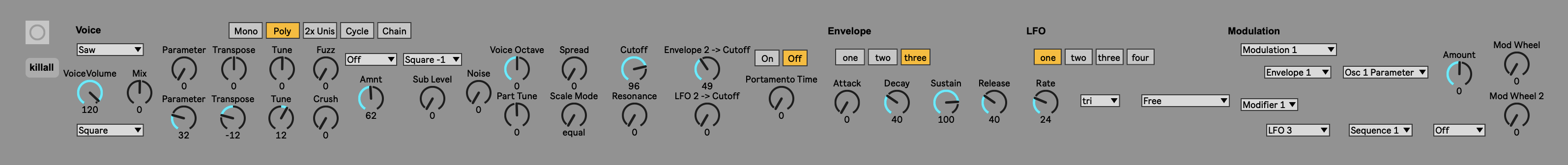| Description: | MIDI-controlled frontend for the Mutable Instruments Ambika. Reaches every parameter except the arpeggiator/sequencer (intentionally), and except for voice allocation and BPM setting (because I don't understand SysEx). Tested on Apple Silicon and Live 12, but if you have a problem I'll do my best to troubleshoot |