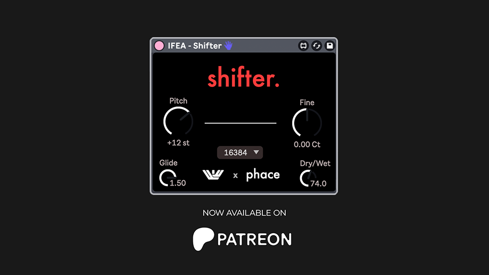 | Description: | I’m thrilled to announce my latest Max for Live device collaboration with Phace. What is IFEA - Shifter ? Shifter. is a powerful, real-time, FFT-based pitch shifter designed to give you maximum flexibility while preserving audio quality. Whether you’re subtly shifting pitches for creative effects or going extreme for experimental sound design, this tool delivers clean and musical results. Key Features: • Real-time FFT Processing: Achieve seamless pitch shifting with minimal artifacts. • Dry/Wet Control: Blend the processed signal with the original for precise control over the effect. • Flexible Use: Perfect for vocals, instruments, drum loops, or even as a creative sound design tool. Shifter. is built to inspire producers, sound designers, and performers who need a reliable, clean, and innovative pitch-shifting solution in their workflow. This device will be available to phace and my Patreon community. By supporting, you’ll not only gain access to Shifter but also to a growing library of music tools, sample packs, and unreleased music that help streamline your production. |