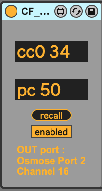 Description: | Easily recall presets on Osmose keyboard. IMPORTANT : use a dedicated MIDI Track, output set to "Osmose Port 2" and Channel 16. To get the correct numbers, hold the preset selection encoder (4th encoder). |