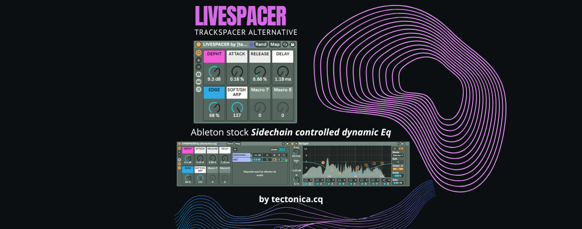 | Description: | LIVESPACER is a sidechain-controlled dynamic equalizer for Ableton Live 12. It is based on a bank of eight bandpass filters, which dynamically run an eight-node equalizer. Through this, it achieves a negative imprint of the spectral envelope of the control signal on the processed signal. Its main intention is to replace the well-known vst "waves factory" "track spacer", achieving similar but unique and extended features, while being efficient in CPU consumption by using only native devices. LIVESPACER es un ecualizador dinámico controlado por sidechain para Ableton Live 12. Se basa en un banco de ocho filtros pasa banda que ejecutan dinámicamente un ecualizador de ocho nodos para imprimir negativamente la envolvente espectral de la señal de control en la señal procesada. Su principal intención es reemplazar el conocido VST "Track Spacer" de Waves Factory, ofreciendo características similares pero únicas y extendidas, siendo eficiente en el consumo de CPU al utilizar solo dispositivos nativos. |