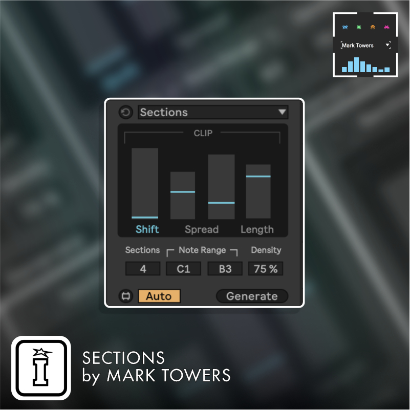 | Description: | The Sections MIDI Generator for Live 12 generates random notes distributed over user defined sections within a MIDI clip. |