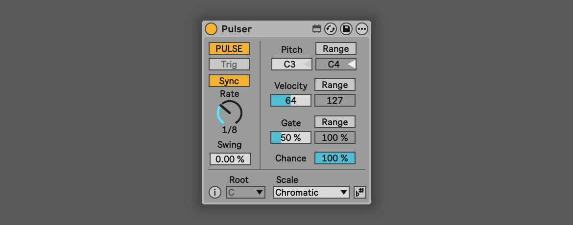 | Description: | Pulser is a free Max for Live MIDI device designed to help you effortlessly generate MIDI data and spark creative ideas. Key Features: - Set ranges for Pitch, Velocity, and Gate values. - Introduce Chance-based variability to MIDI triggering. - Apply Scale Quantization to stay musically in key. - Fully optimized for Ableton Push controllers. Perfect for: - Rapidly sketching musical ideas. - Adding randomness to sound design and effects triggering. - Driving synth playback while working on patches. Compatibility: - Requires Ableton Live 11/12 Standard (with the Max for Live add-on) or Ableton Live Suite. |