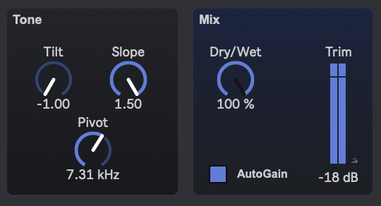 Haven't seen many tilt EQs around here, so as my first Max for Live device, here's a tilt EQ with pivot, slope, dry/wet, trim, and auto-gain toggle. I'm a beginner at Max for Live so I value feedback! |