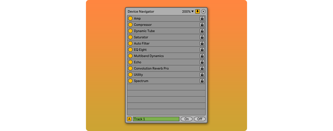 | Description: | Device Navigator allows you to navigate through the devices in a track. Clicking on the list selects the device and places focus on it, scrolling to make it visible if necessary. This makes it easier to navigate through tracks with a large number of devices. In addition to navigation, it offers the ability to activate or deactivate each device from the list, individually or all at once. Each device has a Lock switch to exclude it from the global activation/deactivation. This makes it possible to activate or deactivate only the desired devices with a single action. The devices displayed correspond to the selected track. The list changes automatically when changing tracks. However, it is also possible to display the devices of a specific track even when changing tracks in the project. Multiple instances of Device Navigator can be used at the same time. By manually selecting different tracks in each instance, you can navigate through devices on different tracks. Clicking on the list selects the corresponding track and device, making the track visible and placing focus on the device. See details and changelog at: https://killihu.vstskins.com/device-navigator/ |