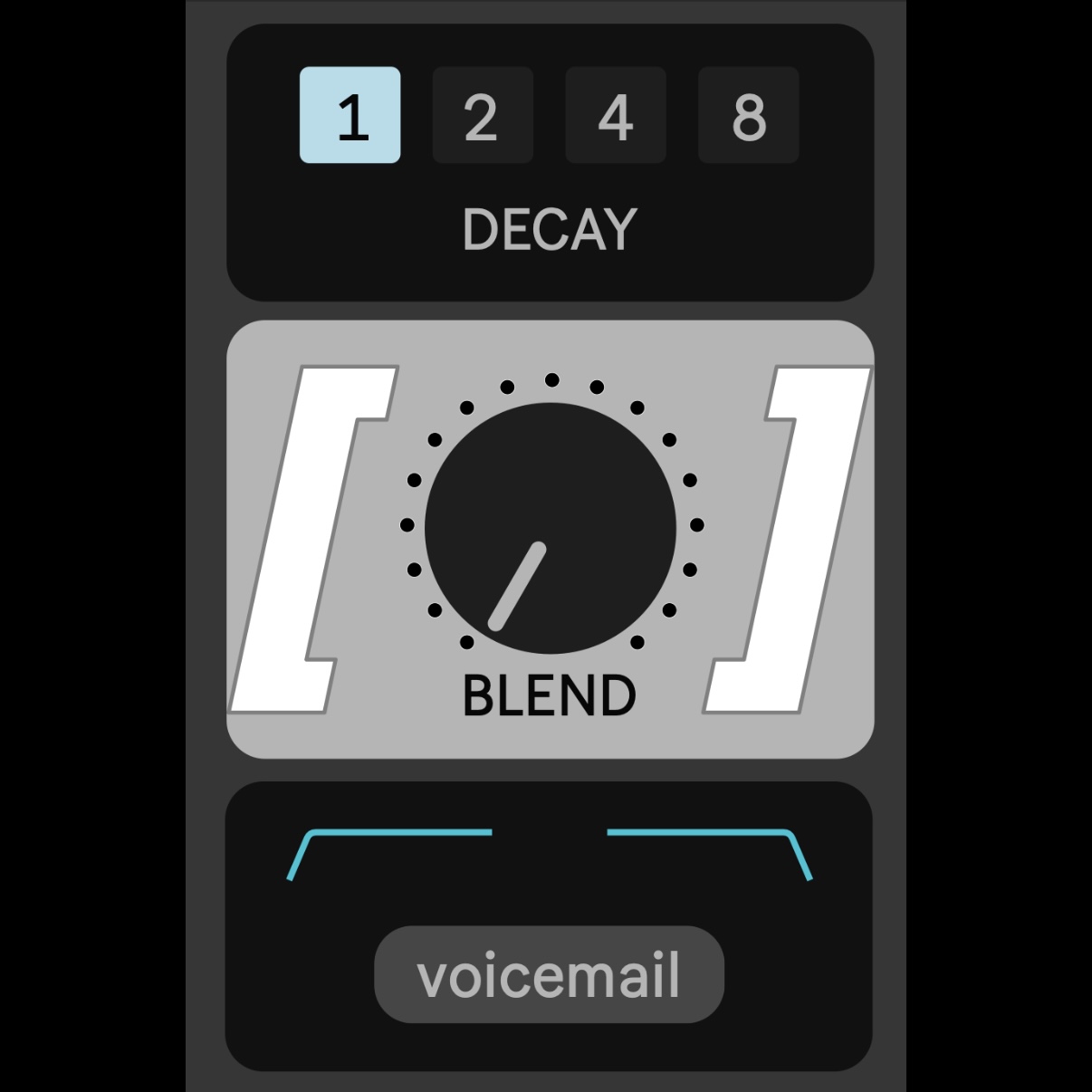 Reverb device with 4 decay times (in seconds), a big dry wet knob, a highpass and lowpass filter (preverb), and a voicemail button. The voicemail button enables an impulse response of a telephone, and works with or without the reverb, so if you just need a simple telephone effect, this'll do ya |