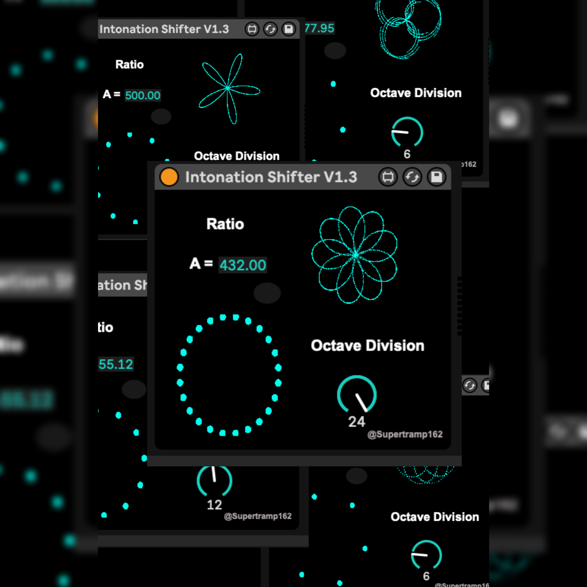 | Description: | The Intonation Shifter is a Max for Live MIDI device for composers, producers, and sound designers interested in non-standard intonation, microtonality, and alternative tuning systems within Ableton Live. This device allows for flexible tuning control by offering: Base Pitch Adjustment: Redefine concert pitch from A = 440 Hz down to A = 400 Hz, enabling use of tunings such as A = 432 Hz, A = 415 Hz, or any custom reference frequency. Custom Octave Division: Select how many notes make up an octave (from 1 to 24 divisions). Supports Equal Divisions of the Octave (EDO), microtonal subdivisions, and experimental temperaments. Includes a responsive visual display using rotating geometric shapes that reflect the selected octave division and intonation ratio. The visuals are tempo-synced to Ableton Live’s transport for intuitive feedback. (this is something i plan on doing a lot with in the next update which will include frequency ratios built upon tempo). This tool is useful for exploring: - Microtonal composition - Non-Western tuning systems - Just intonation, EDO systems (e.g., 19-TET) - A = 432 Hz ambient or meditative music - Experimental sound design Works well with mono and polyphonic synths and modular integrations |