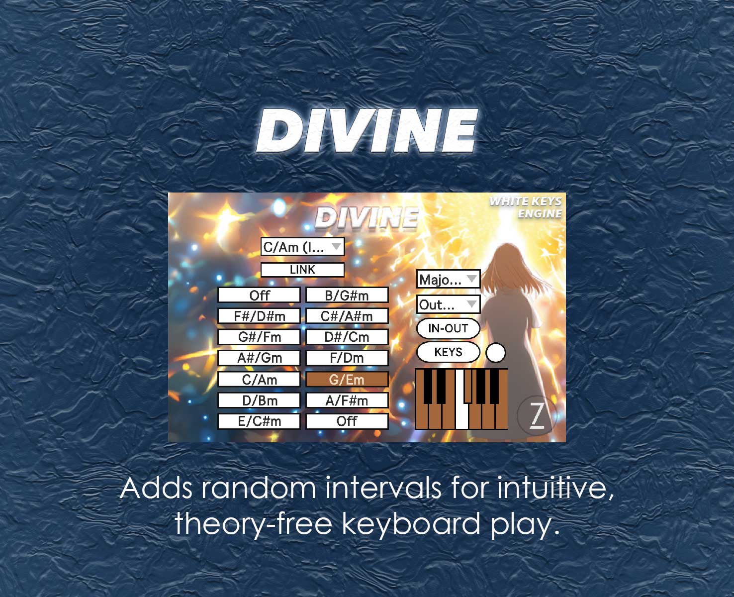 | Description: | Demo videos available in 9 languages : www.zanetwice.com/my-tools/ 21 modes are now available. For those who have downloaded or purchased any of my software, updates are available in the download section of my website. Enjoy! Divine Engine is an innovative plugin that plays a selection of notes with carefully calculated intervals around the played note in a random manner. This feature is extremely practical for playing on a keyboard without worrying about musical theory, allowing for a more intuitive and creative experience. What's new ? Version 1.3 Includes 21 modes: Major Scale, Dorian Mode, Phrygian Mode, Lydian Mode, Mixolydian Mode, Minor Scale, Locrian Mode, Harmonic Minor Scale, Locrian Nat. 6 Scale, Ionian Augmente Scale, Ukrainian Dorian Scale, Phrygian Dominant Scale, Lydian #2 Scale, Dorian #4 Mode, Phrygian Dominant Mode, Lydian Dominant Mode, Lydian Augmented Mode, Bhairav Mode, Melodic Minor Ascending Scale, Melodic Minor Descending Scale, Hungarian Minor Scale Version 1.2 Graphical interface upscaled: The graphical interface has been upscaled for a better visual experience. Version 1.1 Mode selection function added: The 7 major modes are available. Major Scale, Dorian Mode, Phrygian Mode, Lydian Mode, Mixolydian Mode, Minor Scale, Locrian Mode. Version v1.0 Random Note Selection: Plays notes with calculated intervals randomly around the played note, creating unique musical expressions every time. Scale Adjustment: Adjusts the scale of the notes according to the selected key, ensuring harmonious play across different musical scales. Link Function: Connects all my tools together, enabling instant changes to the musical scale. Benefits: With Divine Engine, you can embrace the randomness of life and capture the present moment in your music. Each keystroke and sequence of notes is unique, making every performance distinct and spontaneous. This plugin is perfect for musicians looking to add an element of surprise and creativity to their compositions. Let yourself be surprised by the random order of life with Divine. Install a track to record the present moment, as every keystroke and sequence of notes is unique. |