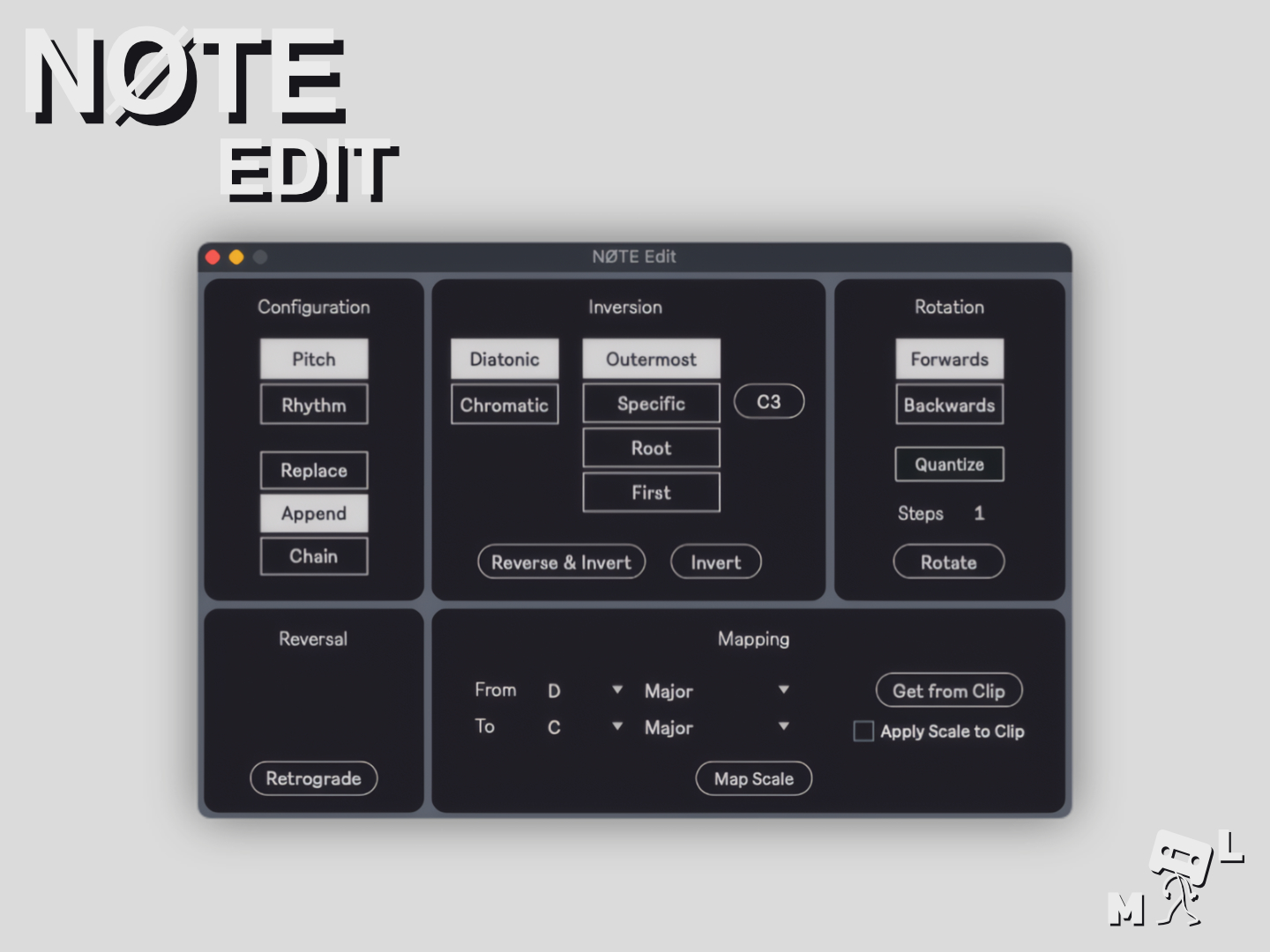 | Description: | Introducing NØTE Edit, a precision toolkit for transforming MIDI clips in ways Live simply doesn’t allow. Whether you're tweaking melodies or reworking rhythmic ideas — NØTE Edit gives you the power to go deep. Most actions in NØTE Edit are based on selecting MIDI notes, either single or multiple. And you can apply the transformations independently to Pitch or Rhythm — giving you tons of flexibility and control. Key features in NØTE Edit: 🎼 Inversion [Pitch] – Invert your selected notes around a reference point. Choose between: Diatonic (respects the clip’s scale) Chromatic (ignores scale) Reference options include Root, First Note, Outermost, or Custom Pitch. 🔁 Rotation [Pitch / Rhythm] – Rotate note positions forward or backward, reshuffling melodic or rhythmic structure. With optional quantization for preserving the selection's duration. ↩️ Reversal [Pitch / Rhythm] – Instantly reverse melodies or rhythms to create retrogrades and rhythmic inversions. 🎹 Mapping [Pitch] – Remap selected notes from one scale to another with a custom algorithm that minimizes awkward or duplicate note outcomes. You can also pull the active scale from the MIDI clip and apply the destination scale directly if needed. The device is built and tested for Live 12. |