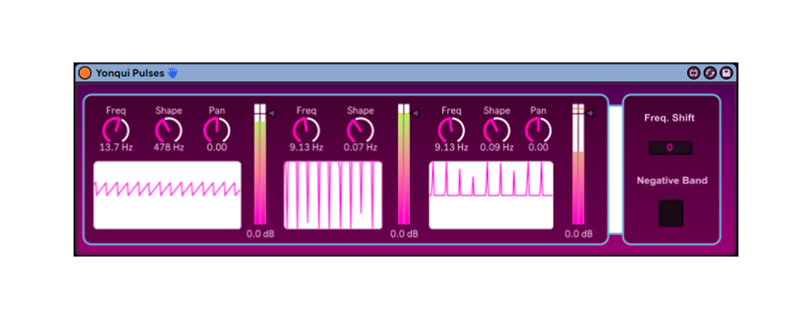 A mixed generator synth with pulsar synthesis and traditional wave generation for clicks and rhythms that also include a frequency shifter to tune the pulses. Just initiate it and start changing the shape of the waves. |