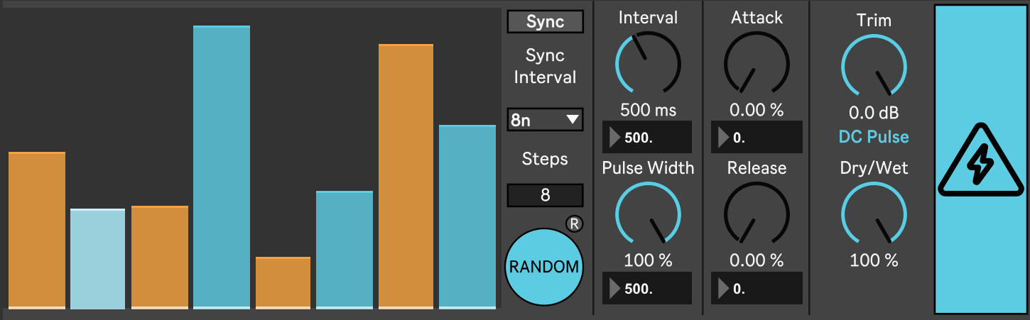 | Description: | This device allows the user to generate DC Pulses that change according to an intervale that is (or not) fixed to the grid. This can be very useful in conjunction with modular synths and other equipment that accept CV. Note that DC voltages can damage equipment and only use this device if you know what you are dealing with. Have fun and leave some feedback for future improvements! 1.1 update: Added individual attack and release controls, replacing the smooth control Added displays for the pulse width, attack and relsease times The sliders stay as saved after the project is closed and opened again Ui improvements 1.2 update: Fully synched with Ableton when in sync mode. It's also aware of which step should be synched to, so results are consistant even working with the arrangement view in this mode Retrigger possible when in free mode (non synched). Retriggering resets the sequence to the first step Ui improvements, such as highlighting which step of the sequence is being triggered 1.2.1 update: Bug fixes: Unable to undo fixed UI changes |