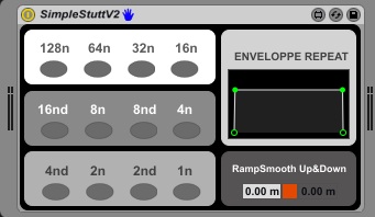 | Description: | Hello! This is simple stutter... Puch the circle for stutt you can link the button in midi to your controller.. 2: i Add Ramp Smooth FX UP & Down. (create fade between FX > no FX Cool for dub style stutt) And Enveloppe Repeat.. clicks are removed in part.. (ps: The litle button to the midle of two "Rampnumbox" is for linked rampup and rampdown) 2.1 : oups I forgot to reorganize the parameters automatable ... :( error repaired..:) |