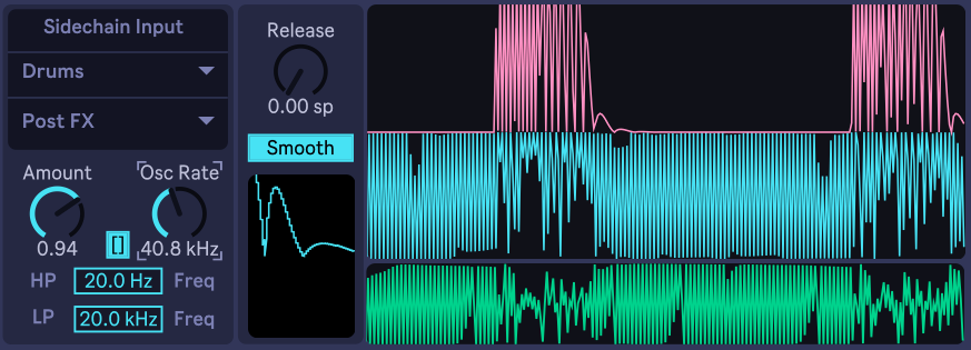 Also, features sidechain gain to increase the crunch, and smoothing to reduce it and make it slightly closer to sidechain compression, without loosing the extreme snappyness!