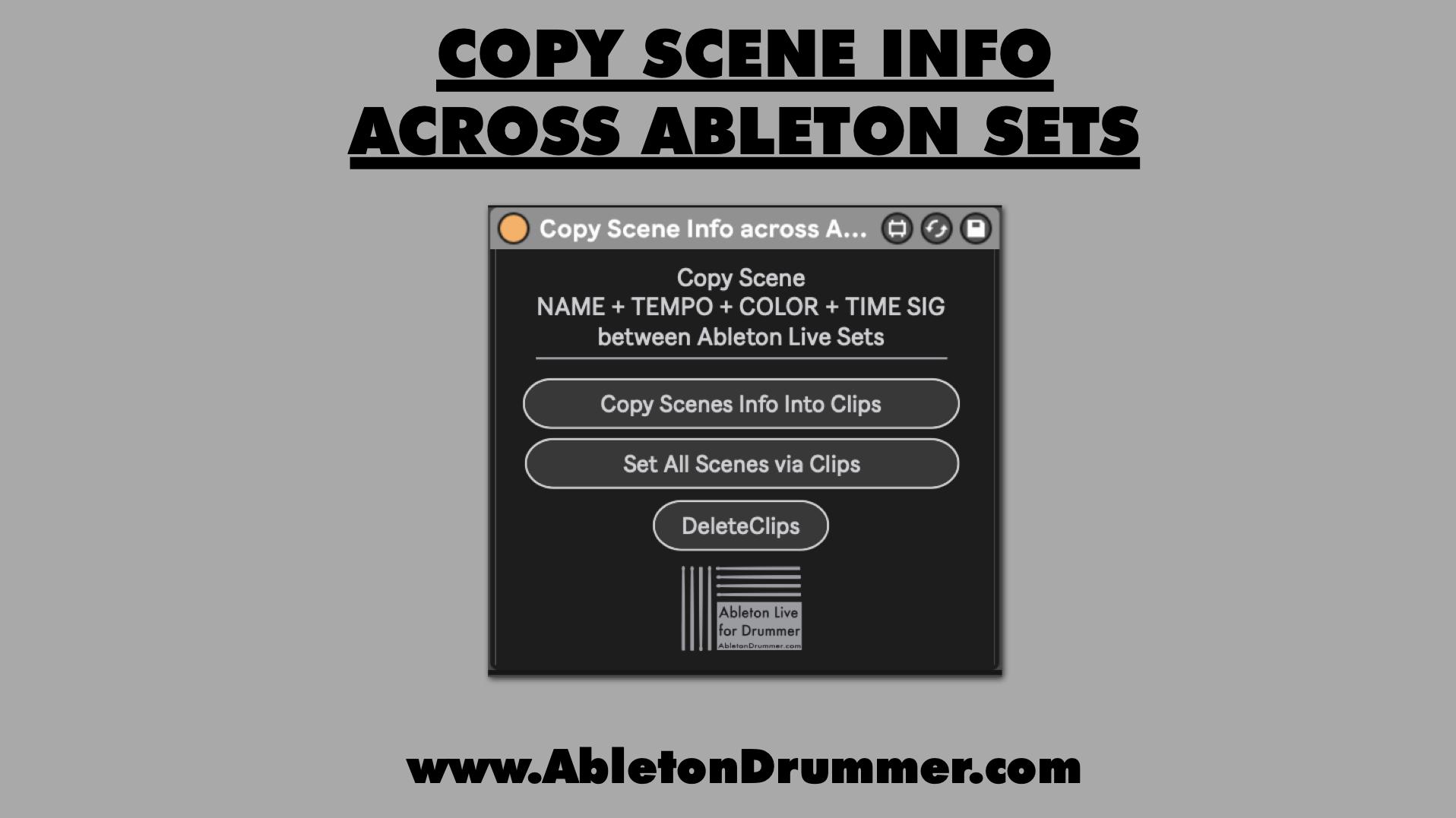 | Name | Version: | Copy Scene Info across Ableton Sets 1.0 |