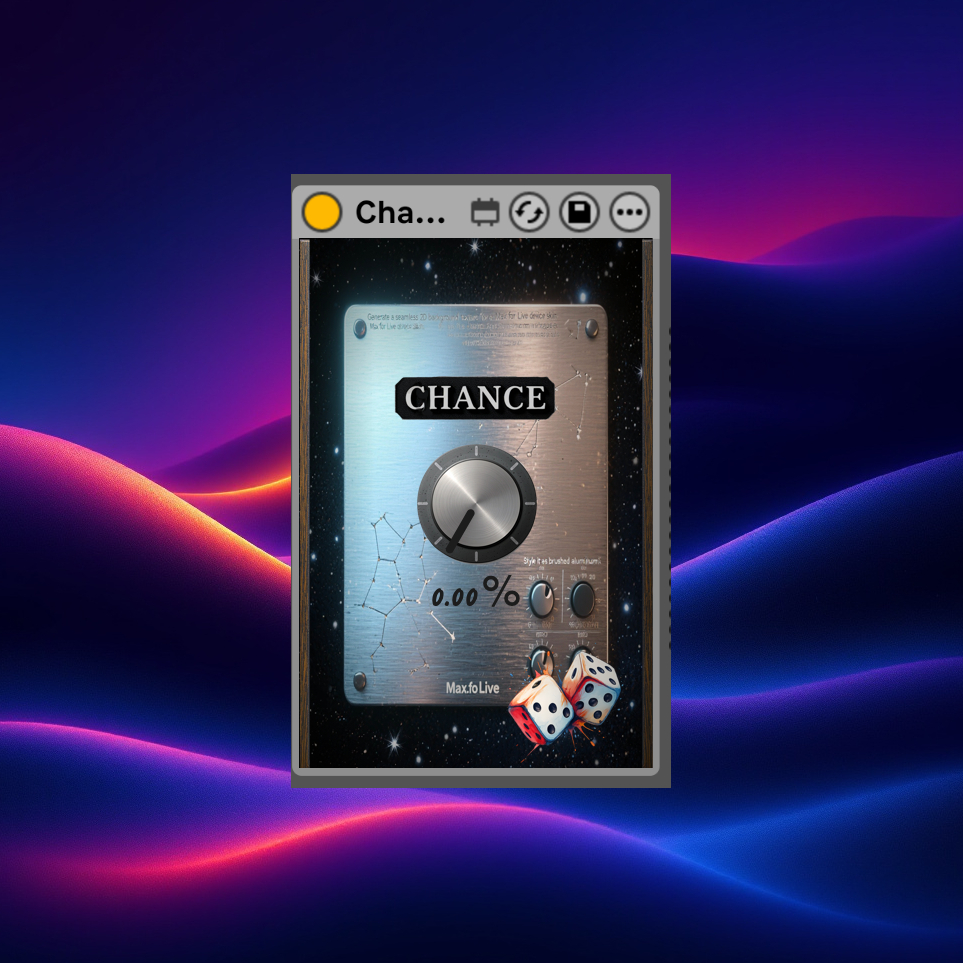 | Description: | I’ve been building some Max for Live tools lately, and I thought I’d share one I’ve been using a lot in my own projects. It’s called Chance – a simple MIDI effect that controls the probability of notes passing through, from 0% (almost nothing gets through) to 100% (everything gets through). What makes it stand out is the UI. Ableton’s stock devices are useful, but everything tends to look grey and identical. I wanted something that’s easier to spot at a glance when I’m in the middle of a session, so I designed a clean, single-knob interface that looks different on purpose. It helps me find it quickly in a busy set without breaking flow. It’s nothing fancy or overloaded with features—just straightforward probability with a nicer look and feel. If that sounds useful, I’ve put it up on Gumroad here: https://analogwave.gumroad.com/l/chance?layout=profile Happy to hear thoughts, ideas, or requests. I’ll be making more of these small utility-style devices with custom skins to keep sessions organized and fun. |