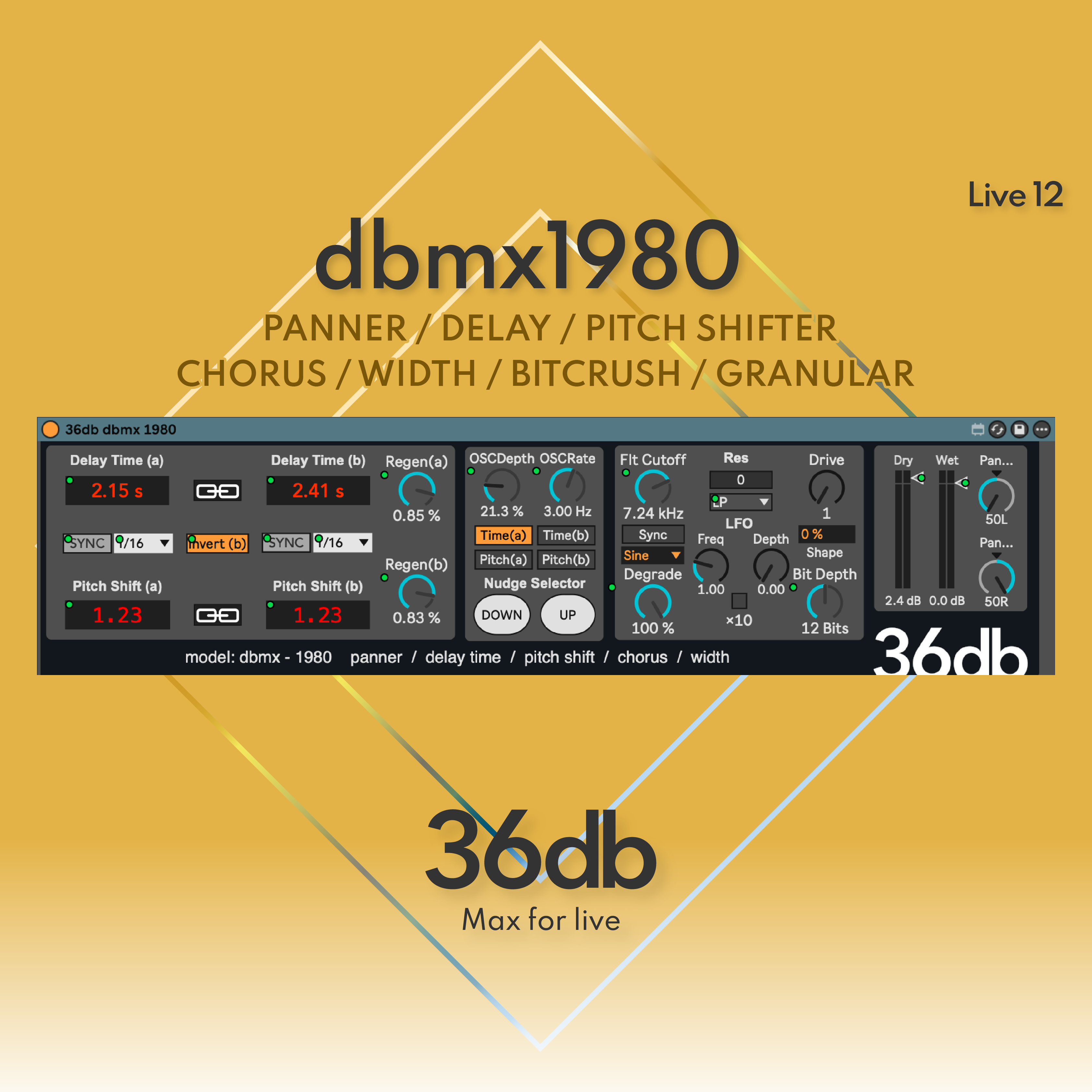 | Description: | Introducing the 36db dbmx-1980, a Max for Live device inspired by the classic hardware delays and effects that shaped modern music. It captures the movement, colour and depth of vintage gear and brings it into a fluid, modern workflow inside Ableton Live™. From shimmering choruses and grainy delays to evolving modulations and saturated atmospheres, the dbmx-1980 moves easily between vintage warmth and experimental texture, all without breaking your flow. Why dbmx-1980? We’ve spent years in studios and developed a deep respect for the processors that defined space and tone in the 80s. A key inspiration for this device is the AMS 1580S, a late-70s delay that became a favourite of artists like Brian Eno, Jean-Michel Jarre, Pink Floyd, Radiohead, The Chemical Brothers, Orbital and many more. The few surviving units are expensive, rare and unpredictable. The dbmx-1980 isn’t a clone. It carries that spirit forward—blending analog unpredictability with modern precision—so you can sculpt everything from clean motion to chaotic colour, right inside Live. |