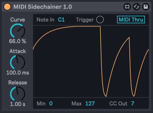 | Description: | MIDI SIDE CHAINER — HOW IT WORKS The MIDI Side Chainer is a Max for Live device designed to bring true side-chain-style ducking to external hardware synths. Instead of using audio to trigger gain reduction, the device listens for a MIDI note or trigger and translates that into real-time CC7 (volume) automation — giving hardware instruments the same pumping, rhythmic movement you’d normally only get inside Ableton. Why this device exists?? Most analog and digital hardware synths map patch volume to MIDI CC7. In theory, that makes it possible to “fake” a side-chain effect by sending CC7 dips every time a kick, trigger, or rhythmic note occurs. But in practice, it’s messy. If you simply send CC7 dips manually: the synth’s volume doesn’t return cleanly to its previous value multiple incoming MIDI messages can leak through to the synth the dynamics feel inconsistent and unpredictable you end up building complicated filter chains just to keep unwanted notes out This device was created to solve all of those problems in one simple, musical tool. What it actually does... When a MIDI note (from a kick, a drum trigger, or any clip you choose) hits the device, it: Ducks your external synth’s volume down to a defined minimum (via CC7). Releases back up to your synth’s actual live volume, not a fixed value. Repeats this continuously, acting like a classic side-chain compressor — but purely in MIDI. It runs on four essential controls: Attack – how quickly the volume dips Release – how smoothly it returns Min – how deep the duck goes Max – the ceiling the volume returns to ************COMPATIBILITY********** Ableton Live 10/11/12 only. Must own Live Suite or own Max for Live 8.1.11 and up. How to check if it will work with your synth? CHECK THIS ->https://youtu.be/dOiNA7MOgtw |