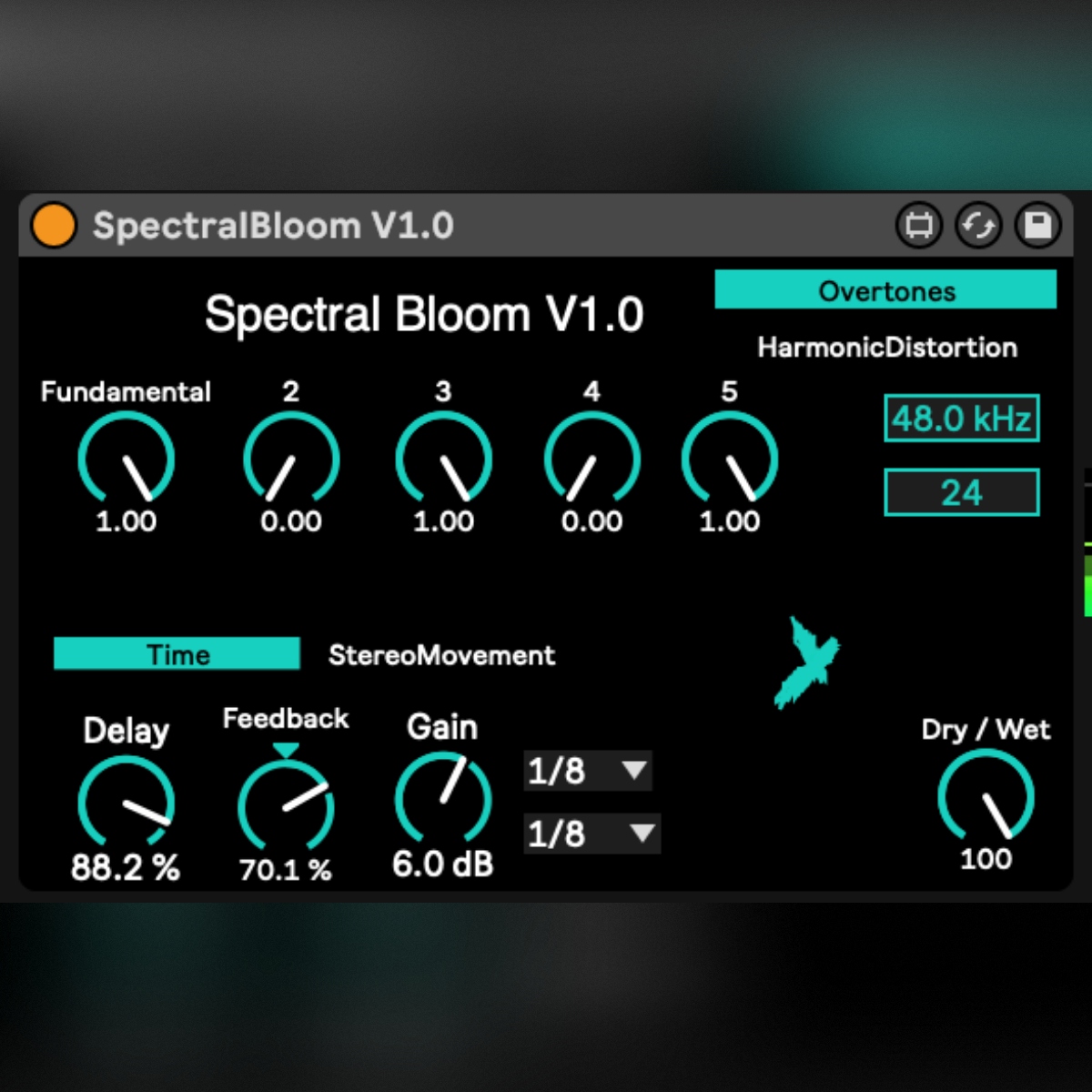 | Description: | Spectral Bloom is a Max for Live audio effect designed by Stephen Black for creating evolving harmonic textures that unfold through time and stereo space in sync with Live’s tempo. The device derives additional harmonic content from the incoming signal, shaping it with controlled harmonic distortion before passing it into a tempo-synchronised delay with independent left and right timing. This signal is then fed into a tempo-locked spatial movement stage, allowing sounds to gently shift position and perceived distance within the stereo field. Rather than functioning as a conventional delay or modulation effect, Spectral Bloom is intended for slow, musical transformation. It is particularly well suited to pads, drones, sustained instruments, and textural material where subtle motion and harmonic development are desired. All modulation and movement is tempo-aware, ensuring the effect feels stable, cohesive, and musically integrated within a mix rather than random or exaggerated. Find me here: Instagram: @supertramp162 Max for Live devices: www.maxforlive.com/profile/user/supertramp162 KVR Audio: www.kvraudio.com/developer/supertramp162 YouTube: www.youtube.com/@Supertramp162 |